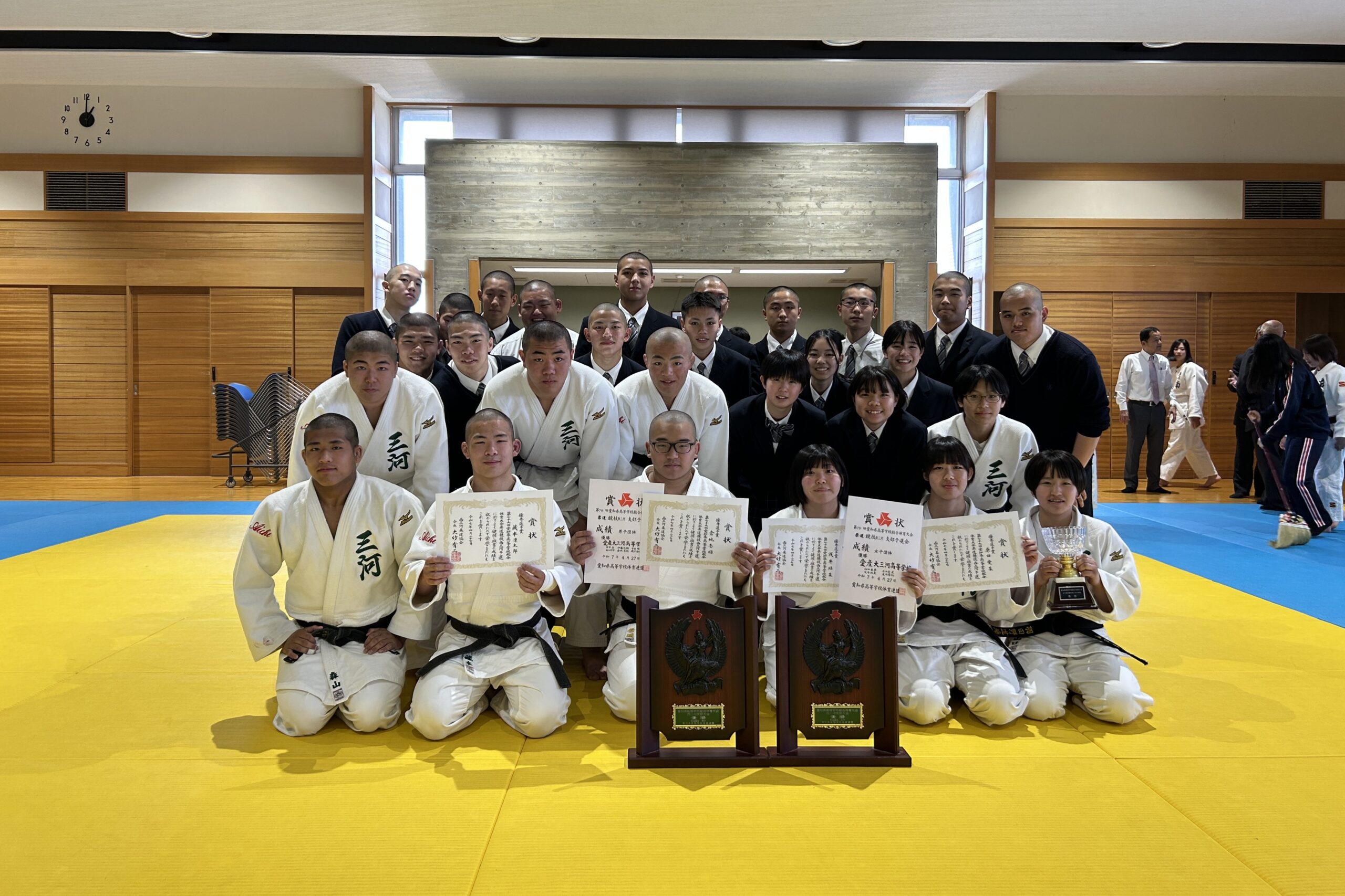 愛産大三河高校柔道部は西三河地区の常勝学校として伝統を築き、昨年度は県大会団体準優勝を果たした。近年では全国大会へ多くの選手を輩出するようになった部活動です。心身の鍛練を通した人格形成をを目的として、目標は全国大会での表彰台としています。専門性の高い競技ではありますが、初心者の生徒も歓迎します。一緒に頑張りましょう。